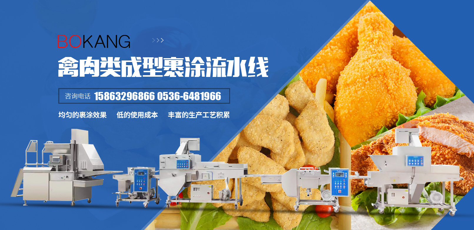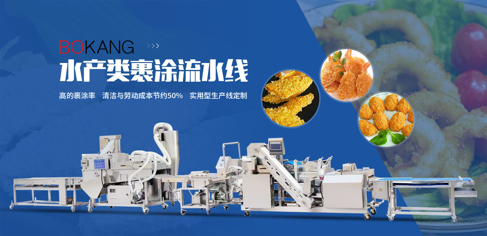 我們是一家生產(chǎn)預(yù)制調(diào)理類成型裹涂設(shè)備的廠家。為您提供產(chǎn)品裹涂解決方案。經(jīng)過(guò)多年的努力與革新,既可給食品工業(yè)的用戶提供生產(chǎn)線中的單臺(tái)設(shè)備,也可以提供多種設(shè)備組成的完整生產(chǎn)線。